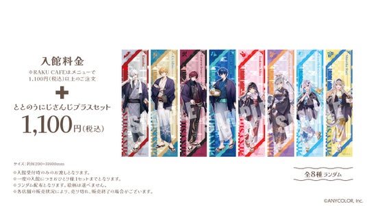 店舗ご入館時に、入館料金+ととのうにじさんじプラスセットをご購入いただいた方に、撮り下ろしイラストを使用したコラボ限定のマフラータオルをお渡しします。