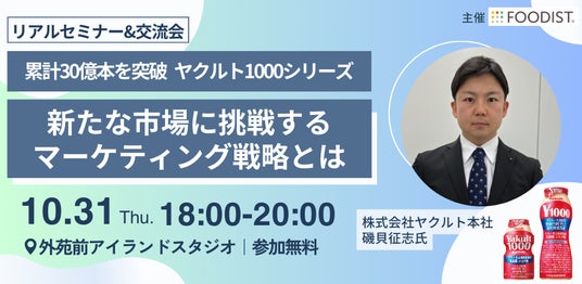 約3万人の「フーディスト(R)(料理インフルエンサー/料理クリエイター)※」が参加する、日本最大級の料理インフルエンサープラットフォームサービス「フーディストサービス( https://foodist-service.jp/ ) 運営:アイランド株式会社」は、主催するマーケティングセミナーにて株式会社ヤクルト本社 磯貝征志さんをお迎えし「累計30億本を突破 ヤクルト1000シリーズ 新たな市場に挑戦するマーケティング戦略とは」を10月31日(木)に開催いたします。