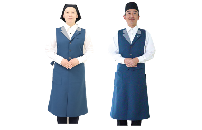 新制服は、「初心を忘れない」をテーマに、時代の変化にも対応する制服を採用致しました。鼓月の創業当時のブルーグレーを基調とした色合いに仕上げ、ブランド自体のモダンアップデートを目指しております。
