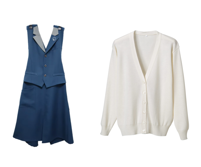 売り場の空調によって温冷の温度感は人様々です。今回の制服からは白のカーディガンの着用が認められるようになりました。ワンピースタイプの制服の下に希望者はカーディガンを着用することで、冷房や寒さ対策にも繋がりつつ制服のイメージは崩さない仕様にしております。
