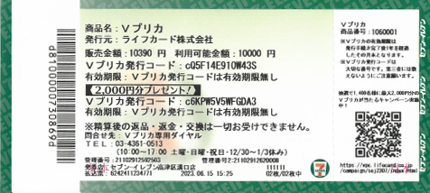 Vプリカ購入後、レジで受け取るチケットに【2,000円当たり!】等の記載があれば当たりです。
