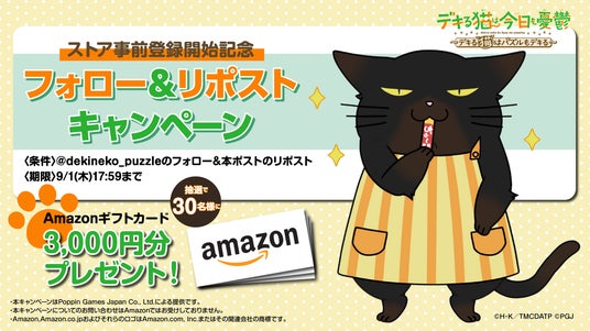 ストア事前登録の開始にあわせて、8/23(金)18:00より9/1(木)17:59までパズ猫公式Xにてフォロー・リポストキャンペーン第二弾を開催します。