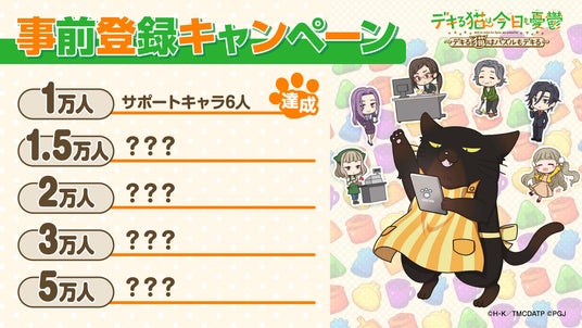 ポッピンゲームズジャパン株式会社(本社:東京都港区、代表取締役 CEO:谷口祐一郎)は、TVアニメ「デキる猫は今日も憂鬱」(略称:デキ猫)の新作スマートフォン向けパズルゲーム「デキる猫は今日も憂鬱~デキる猫はパズルもデキる~」(略称:パズ猫)のリリースに先駆け、App Store / Google Playにてストア事前登録を開始したことをお知らせいたします。