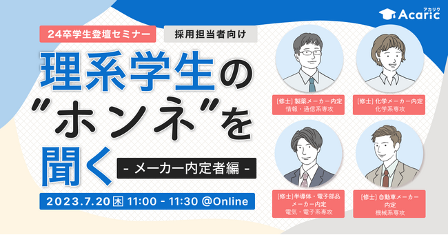2023年7月20日(木)11:00 - 11:30 @オンライン【メーカーへの内定が決まった24卒修士学生4名が登壇】