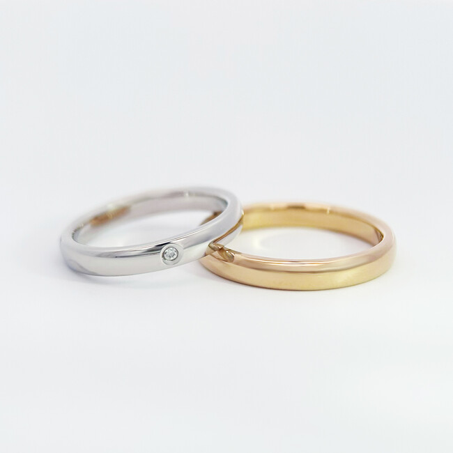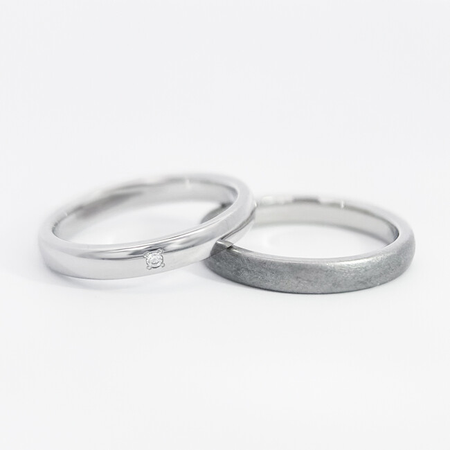 指輪のアレンジはデザインタイプ2種・マテリアル9種・表面加工5種・デザインアレンジ3種・表面ダイヤ留め6種などからおふたりのお好みに合わせて選択でき、その組み合わせはなんと3000種類以上。