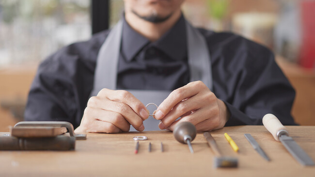 「ハンドメイドリングに、付加価値を。」高い技術を誇る職人とマンツーマンで、1本3万円~指輪作り。ふたりの思い出だけでなく、ジュエリーとしてのクオリティも追求できる。