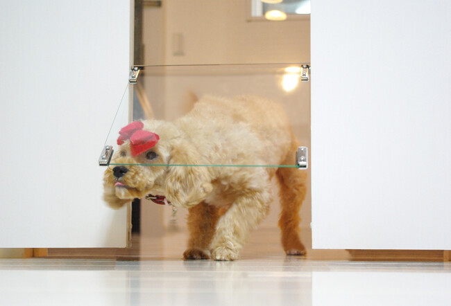 フルハイトドア(R)はドア自体のサイズが大きく設置する開口が広いため、開けっ放しにするとエアコンの冷気や暖気が大きく漏れ、冷暖房の効率が下がってしまいます。このため「スタイリッシュなドアを取り付けたいが、ドアを締めた状態でもペットが出入りできるフルハイトドア(R)が欲しい」というペットオーナーの声を受けて開発されました。