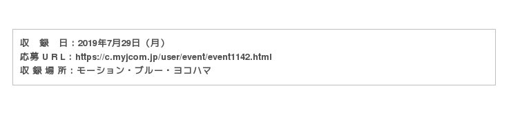 2019年7月29日(月)モーション・ブルー・ヨコハマにて収録。J:COMのご加入者25組50名をご招待!
