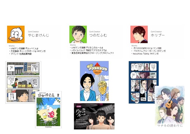 当社は、お笑い芸人や俳優、モデル、アーティスト、経営者、クリエーターなど「おもしろい人=タレント」の才能を拡張させるパートナーとして、多くのタレントのプロデュース戦略を立案し、タレントのSNSを起点としたIP開発や広告商品の開発を手掛けています。また企業向けに、タレントを軸とした多様なコンテンツを中心にソリューションを提供しているマーケティングカンパニーです。また、コルクはSNSを中心に活躍するマンガ家を発掘・育成し、所属作家の作品価値を最大化するクリエイター・エージェンシーです。TwitterおよびInstagramで10万フォロワー超の作家が多数在籍し、マンガ家育成の学校事業も手がけ才能を発掘し続けており、ストーリー性とオリジナリティに富んだマンガ作品を多数生み出しています。