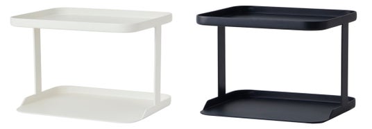 この度発売の『調味料ラック ワイド』 は、1段につき調味料ポット ワイドが2個、調味料ポットが3個収納できる幅広タイプです。調味料ポットの容量やお持ちの数に合わせて、2つのサイズから選べるようになりました。