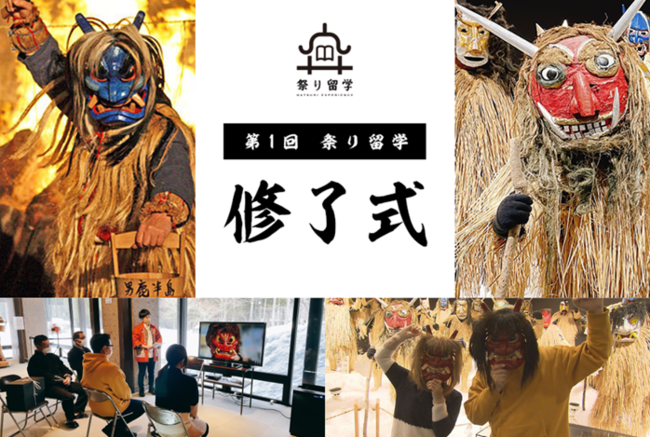 2021年度は秋田県男鹿市の男鹿のナマハゲをテーマに、男鹿市観光協会DMO推進室の協力のもとオンラインとオフラインを掛け合わせたツアープログラムを展開してきましたが、2022年2月12日(土)に男鹿市の真山神社にて開催した『祭り留学』修了式をもって、すべてのプログラムが終了いたしました。