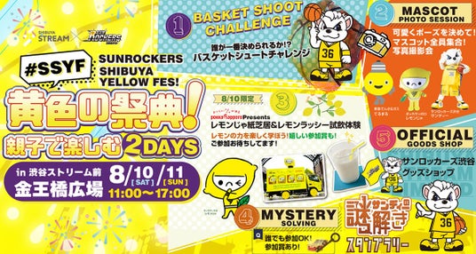このたび、渋谷駅に直結する大規模複合施設「渋谷ストリーム前 金王橋広場」にて、「サンロッカーズ渋谷 黄色の祭典!親子で楽しむ!2DAYS」を8月10日(土)、11日(日)に開催することが決定いたしました。