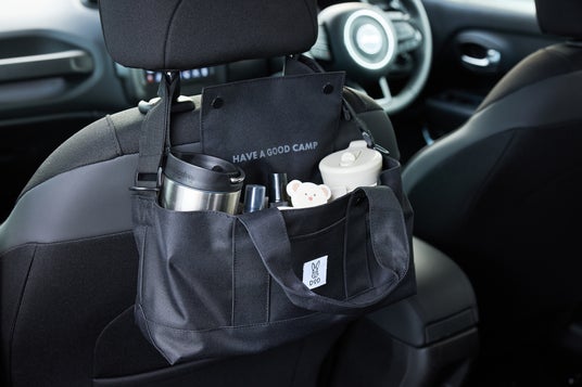 DODのハコ型になるトートバッグ「トートハコナール」をイメージしたベビーカーバッグ。第2弾で瞬く間に完売したアイテムが、新色ブラックで再登場。よりスマートな印象でお使いいただけるようになりました。面ファスナー仕様で着脱簡単、仕切り付きで左右に飲み物を2本収納可能です。バッグの中身を隠せるフラップ裏面にプリントされた「HAVE A GOOD CAMP」のメッセージが遊び心あるワンポイントに。ベビーカーバッグ、カーオーガナイザー、ショルダーバッグ(ショルダーベルトを外せばミニトート)として使える3WAY仕様です。