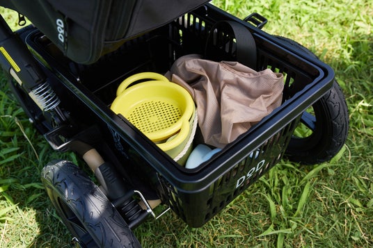 ベビーカーに付属するDODロゴ入りバスケットを、単品でお買い求めいただけます。プラスチック製のため軽量で、汚れを気にせず使用しやすい。容量はたっぷり20Lで、キャンプなどのアウトドアシーンやおうちのインテリアとしても活躍します。
