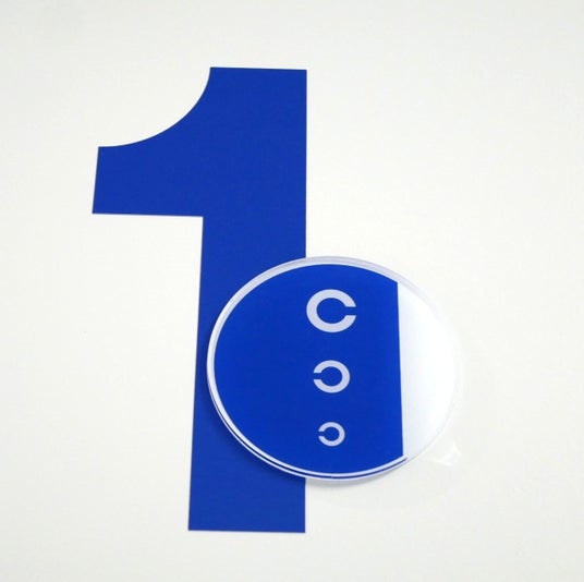 サインは、コンタクトレンズをイメージした円を基調とし、さらに視力検査に用いるランドルト環をちりばめたデザインとなっております。