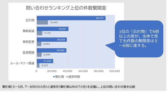 最も多かったコンタクトセンターへの問い合わせ第1位は「忘れ物」次いで「無断超過」「車両変更」「延長」が多い傾向に