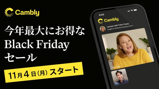 さらに、11月4日(月)午前8時からは、今年最大級のBLACK FRIDAYセールを実施!最大50%オフで、Camblyのネイティブ英会話を始められます。またCambly Kidsも最大36%オフと、お子さまの英会話学習をお得に始める絶好の機会です。