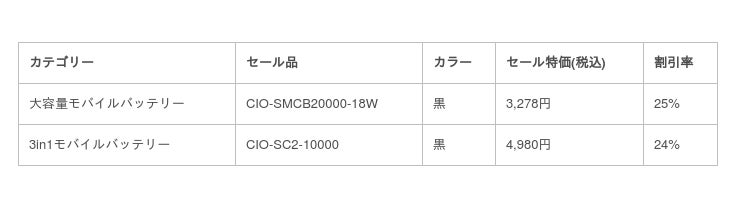 セール対象品(モバイルバッテリー関連)
