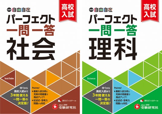 株式会社増進堂・受験研究社(本社:大阪市西区、代表取締役:岡本泰治)は、中学社会/理科の全学習内容を<社会 約1900問/理科 約1800問>の圧倒的な問題数で網羅した、中学入学後の日常学習・定期テストから高校入試対策まで3年間使える『中学&高校入試 パーフェクト一問一答 社会/理科』を2024年5月29日より発売いたします。