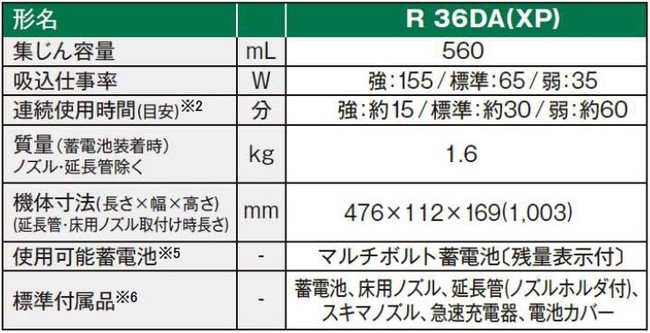 ・36VコードレスクリーナR 36DA(XP) ※マルチボルト蓄電池(残量表示付 BSL 36A18)・急速充電器(UC 18YDL2)付