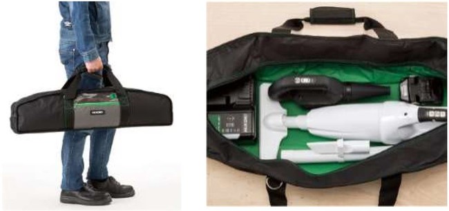 クリーナとブロワをまとめて収納できる大容量の収納バッグを標準付属しています。セットに含まれているマルチボルト蓄電池BSL 36A18と急速充電器UC 18YDL2も丸ごと収納可能で、持ち運びに便利です。