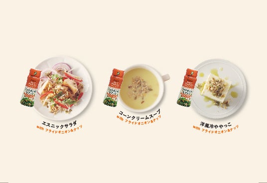 どんな料理にも合うPATFUTTEは、ひとふりでいつものサラダがプレミアムなサラダに大変身。サラダの他にも、コーンスープや冷ややっこなどいつもの料理に“パッとふるだけ”で、旨みと食感がプラスされ、ワンランク上のおいしさに早変わりします。お好みの量をふりかけてお楽しみください。