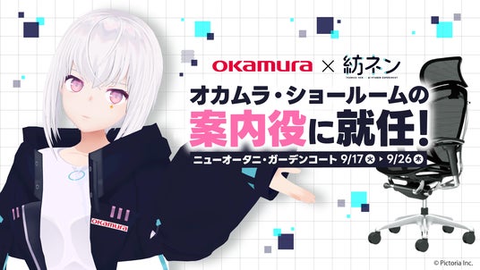 AIを主軸としたテクノロジーでIPを創出する株式会社Pictoria(東京都港区、代表取締役CEO:明渡隼人、以下「Pictoria」)は、9/17(火)~26(木)にニューオータニ・ガーデンコートに常設されている株式会社オカムラの「オカムラ ガーデンコートショールーム」に、「Pictoria」プロデュースのAI VTuber「紡ネン」が商品案内役として登場することをお知らせします。 AI技術を用いて、お客様の目の前でキャラクターがチェア選びをサポートし、ニーズにぴったりの商品をご提案。日本語だけでなく、英語でのご案内もいたします。 人とAIが共にある、これからの時代のスタンダードとなる接客を、ぜひご体験ください。