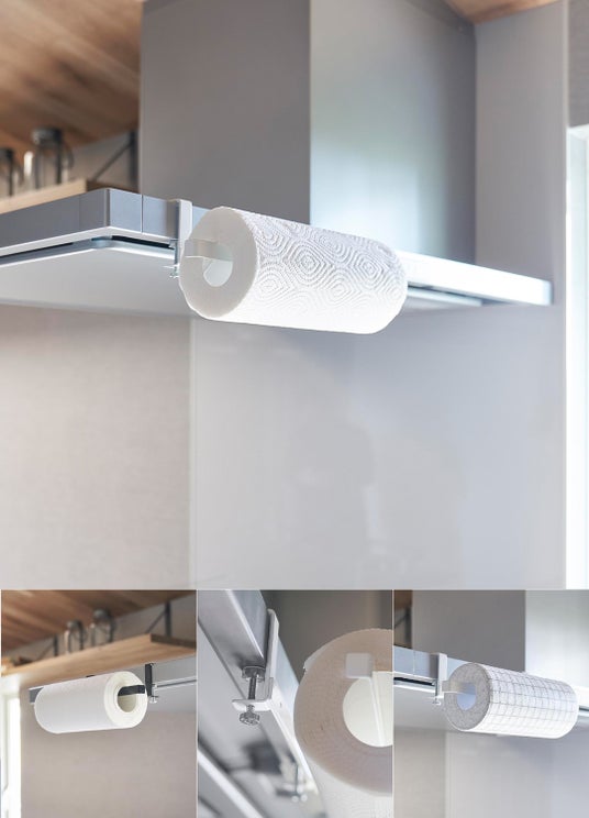レンジフードのお好みの位置に簡単取り付けできるキッチンペーパーホルダー