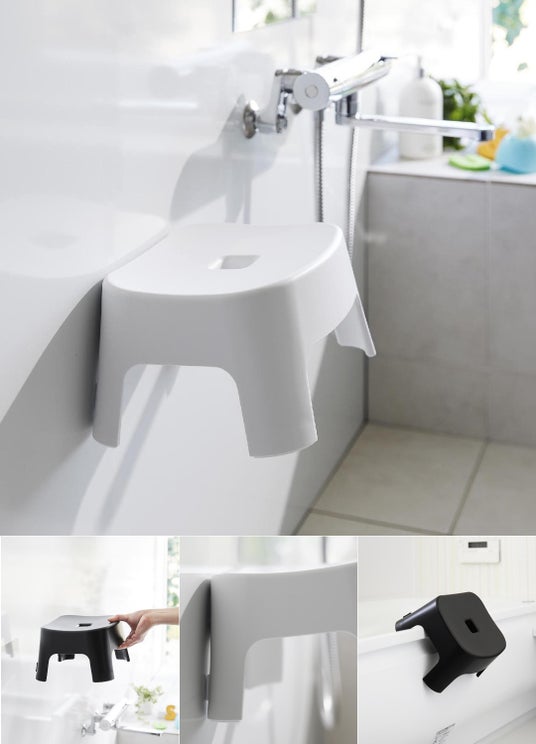 浴室の物干しバーに掛けて乾かせるフック付き風呂イス。