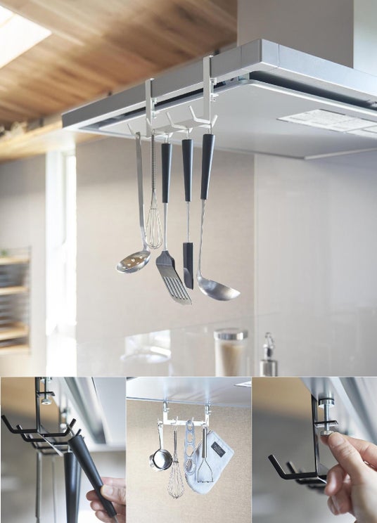 レンジフードのお好みの位置に簡単取り付けできるキッチンツールフック7連。