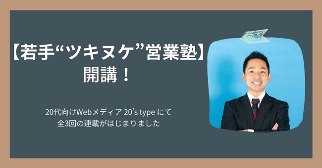 株式会社営業ハック(本社:東京都港区)代表取締役社長笹田裕嗣が、株式会社キャリアデザインセンター(本社:東京都港区 代表取締役社長兼会長:多田 弘實)が運営する、Webメディア『20’s type』にて2022年9月21日より連載をはじめました。年齢や経験に関係なく「結果を残した者がトップに立つ」ことができる営業職。では、20代のうちから「突き抜けた成果」を出すためにはどうすればいいのか?をテーマに、営業代行や研修事業を展開する株式会社営業ハックの代表笹田が語ります。タイトルは【若手“ツキヌケ”営業塾】これから全3回でお届けいたします。