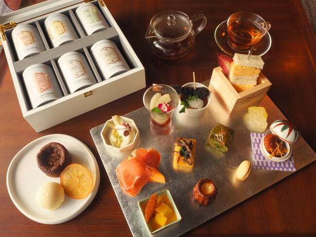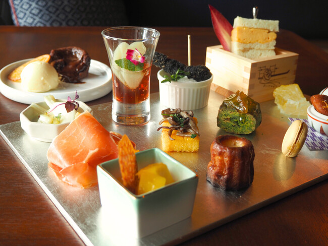 スイーツ7種、セイボリー7種、バラエティー豊富なメニューを「曲水の宴」のコンセプトでデザインされたレストランの中でお楽しみ頂けます。