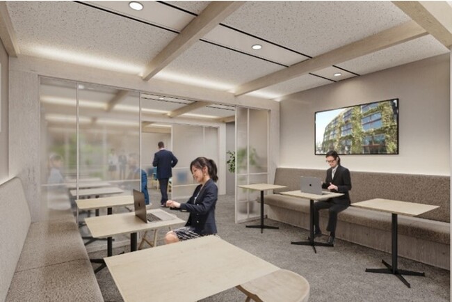 フィスワーカーには本施設のラウンジを休憩スペースやランチスペースとして開放し、ビル入居者向けには、会議室やWEB会議ブースの時間利用に加え、短期プロジェクトや一時的な就業人数増員への対応として個室利用も可能となっております。