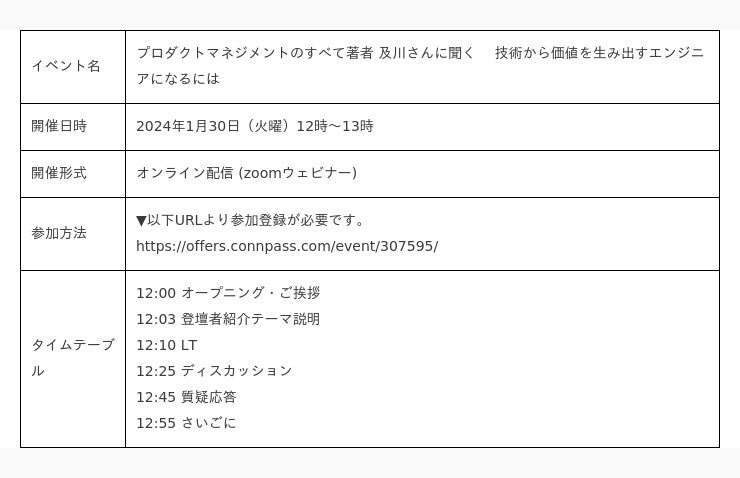 ITエンジニア/デザイナーの副業・転職サービス「Offers(オファーズ)」を運営する株式会社overflow(本社:東京都港区、代表取締役: 鈴木裕斗・田中慎 以下、overflow)は、2024年1月30日(火)12時から、ITエンジニア・デザイナーに向けたイベント「プロダクトマネジメントのすべて著者 及川さんに聞く 技術から価値を生み出すエンジニアになるには」を開催することをお知らせします。