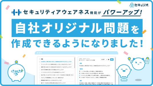 セキュリオを提供するLRM株式会社(本社:兵庫県神戸市、代表取締役:幸松哲也)は、このたび「セキュリティアウェアネス」機能において、自社オリジナル問題を作成・運用できる『オリジナル問題作成機能』をリリースしたことをお知らせいたします。