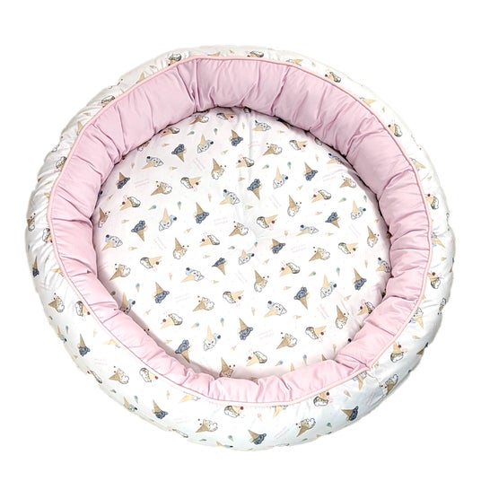 気温が上がるこれからの時期に嬉しい、接触冷感素材を使用したラウンド型ペットベッド。それぞれブルーとピンクを基調とした、サメにゃんデザインとアイスにゃんデザインの2種類展開。