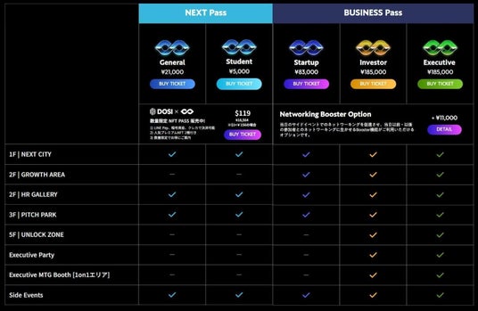 「NEXT Pass」「BUSINESS Pass」目的別に二種類のチケットを用意