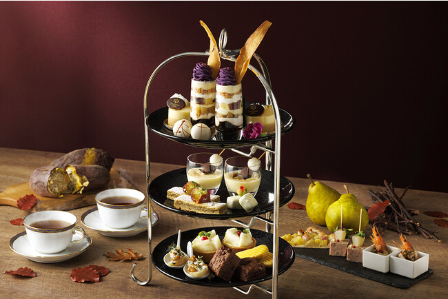 “食”に関心が集まる季節。最上階のスカイラウンジ&ダイニング「アーティスト カフェ」では、秋に旬を迎える食材を使用したスイーツの数々にイタリアンのアレンジを加えた「蜜いも&洋なしアフタヌーンティー」を開催。