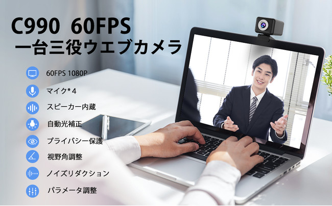 Webカメラ C990は60°~96°視野角調整機能を備え、60°視野角レンズが小さい範囲の撮影が可能で、個人ワークや生放送に最適、96°視野角レンズで幅広い範囲の撮影が可能で、複数人のオンラインセミナーやビデオ会議、家族用でも活用できます。また、プライバシーカバー付き、個人プライバシーを保護できます。