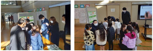 平間小学校はかなりSDGsに力を入れており、学校の中にもいろんな展示がされていました。子どもたちも興味を持って一生懸命話を聞いてくれ、NTT東日本グループが進める取り組みをたくさん理解していただいたと思います。