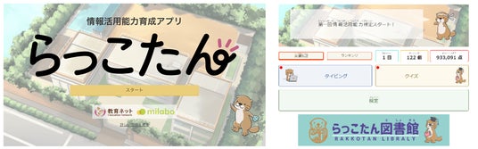 らっこたんとは、「株式会社 教育ネット」と「株式会社 ミラボ」が共同で開発した、情報活用能力を身につけることができるクラウド型デジタル教材です。AIを活用して、タイピングや情報活用に伴う基本的な知識を効率的に習得することができます。