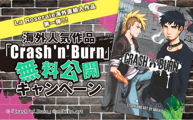 La Roseraie海外直輸入作品第一弾!海外で人気のBL作品「Crash 'n' Burn 1」のLa Roseraie限定公開を記念して、1月31日までのレビュー投稿で100ポイントプレゼント!