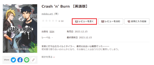 La Roseraie海外直輸入作品第一弾!海外で人気のBL作品「Crash 'n' Burn 1」の限定公開を記念して、1月31日までのレビュー投稿で全員に100ポイントプレゼント!!