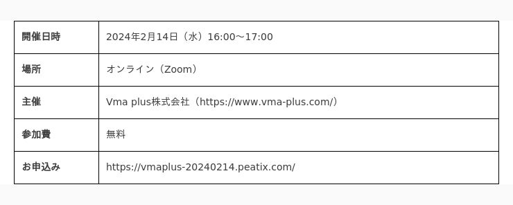 ▶お申込み詳細:https://vmaplus-20240214.peatix.com/