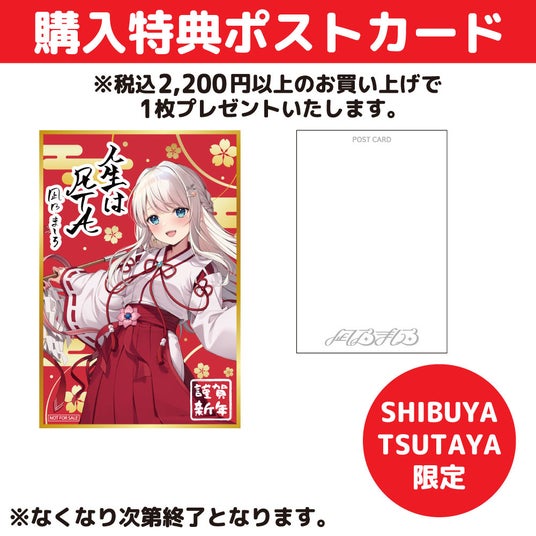 SHIBUYA TSUTAYA店頭限定で、1会計2,200円(税込)以上の対象商品ご購入で、オリジナル特典「年賀状風ポストカード」を1枚プレゼントします。