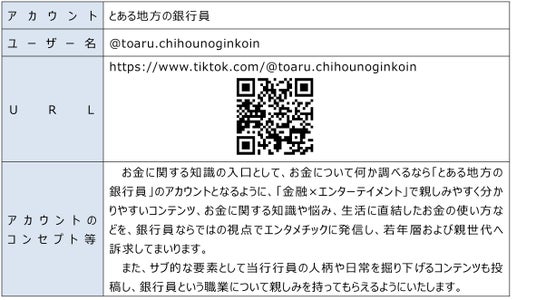 当行は、2022年10月に株式会社ホリプロデジタルエンターテインメントの代表取締役社長・鈴木秀氏とSNS業務アドバイザー契約を締結し、SNS全般にわたって指導・助言を受けてまいりました。本 アカウント開設以降、視聴者に対するインパクトや話題性の観点から、あえて当行名は伏せて、「とある 地方の銀行員」として当行行員がプライベートで投稿するという設定としておりました。