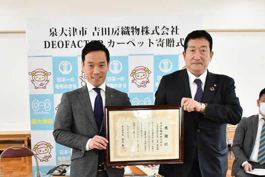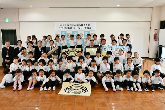 大阪府泉大津市(市長:南出賢一)は、地元繊維企業である吉田房織物株式会社(泉大津市、代表取締役社長:吉田裕紀、以下「吉田房織物」)から、高機能なDEOFACTOR(デオファクター)カーペットの寄贈を受け、市立旭幼稚園において寄贈式を開催しました。