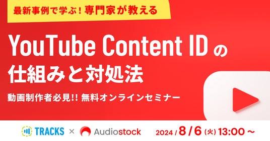 世界最大級のロイヤリティフリーのストックミュージックサービス「Audiostock」(https://audiostock.jp)を運営する株式会社オーディオストック(岡山市北区、代表取締役社長:西尾 周一郎、以下「当社」)は、映像制作業界の方を対象にオンラインセミナー「最新事例で学ぶ!専門家が教える YouTube Content IDの仕組みと対処法」を2024年8月6日に開催いたします。