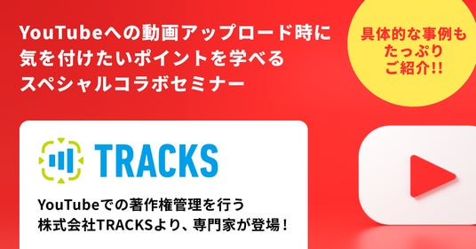 今回のオンラインセミナーでは、YouTubeでの著作権管理を行う 株式会社TRACKS のご担当者様をゲストにお招きし、YouTubeへ動画をアップロードする際に気を付けたい「YouTube Content ID」の仕組みと対処法について、詳しくご紹介します。