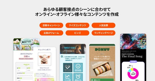 Fan Fan Fanは、ブランドとファンを繋ぐ様々なコンテンツを、誰でも簡単に作成・運用できるAIインターフェースです。ファンが快くゼロパーティデータを提供できる多彩なコンテンツを内製化し、収集データを蓄積・活用。データを活用した施策を迅速に展開し、顧客理解、ファンの醸成、ロイヤリティ向上を実現します。